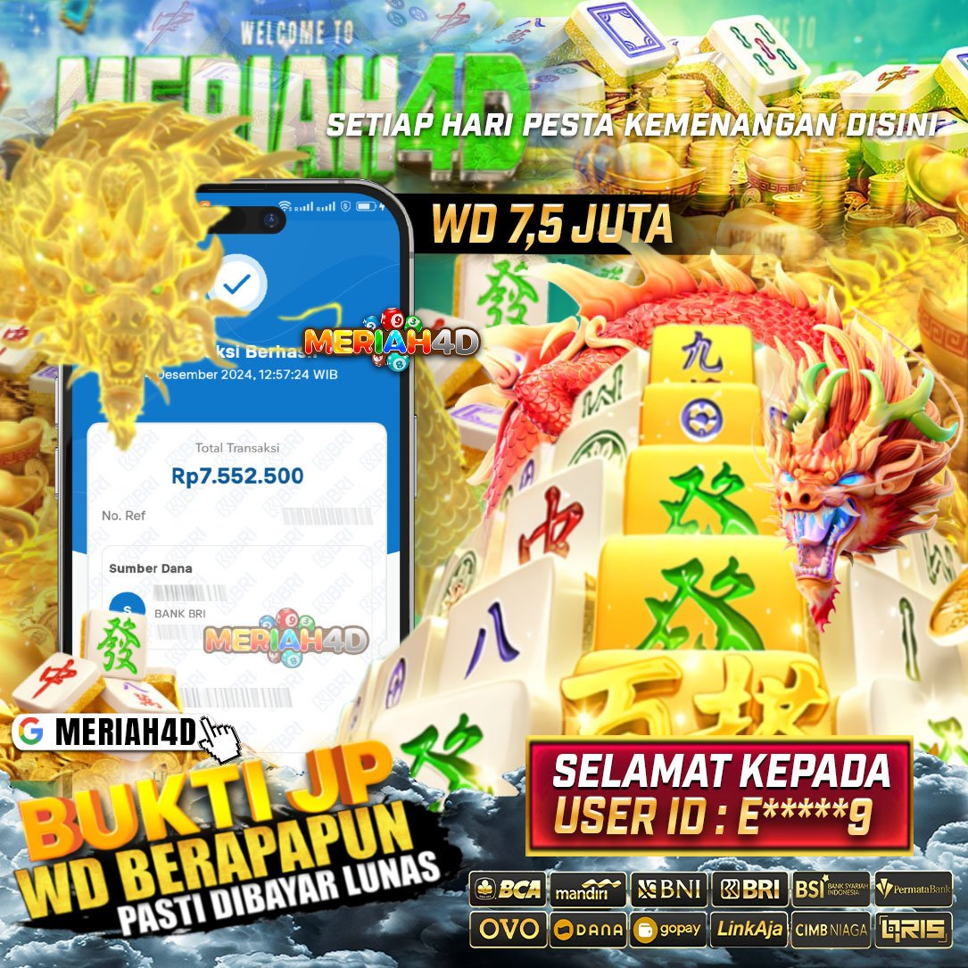 Selamat Kepada ID : E*****9 Atas Withdraw Rp. 7.500.000 Juta Hari ini. Ditunggu Withdraw Selanjutnya dan ajak juga teman temannya bergabung di Meriah4d