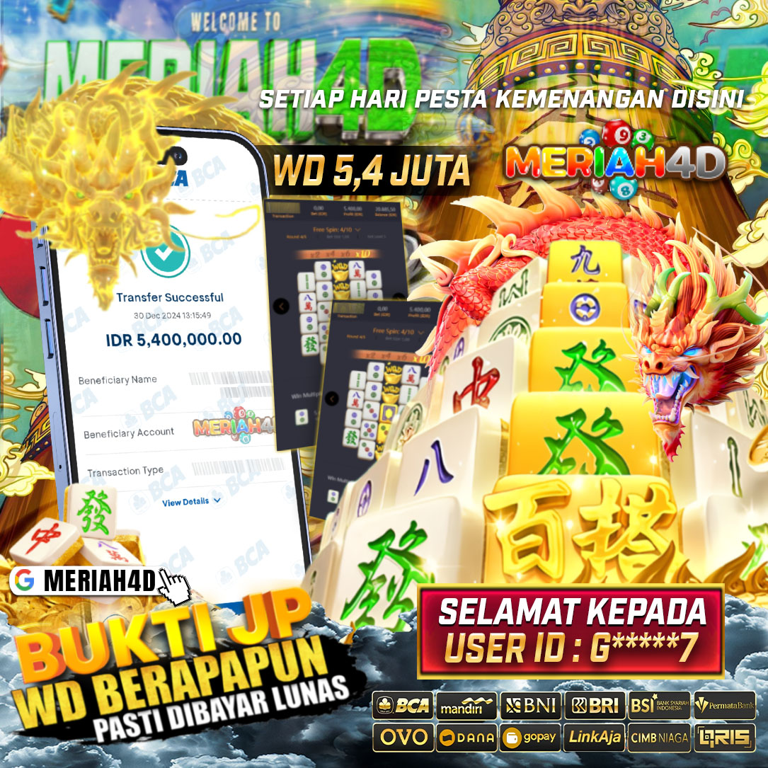 Selamat Kepada ID : G*****7 Atas Withdraw Rp. 5.400.000 Juta Hari ini. Ditunggu Withdraw Selanjutnya dan ajak juga teman temannya bergabung di Meriah4d