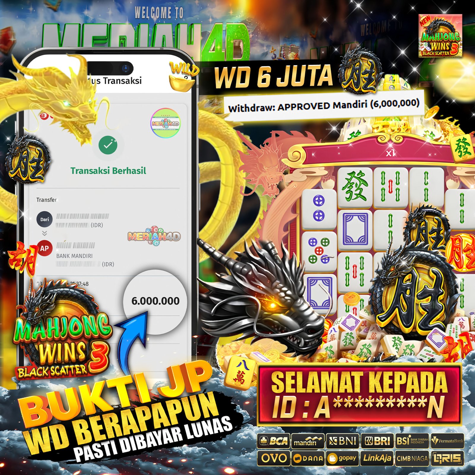 MERIAH4D Bukti Kemenangan Slot MAHJONG WINS 3 BLACK SCATTER