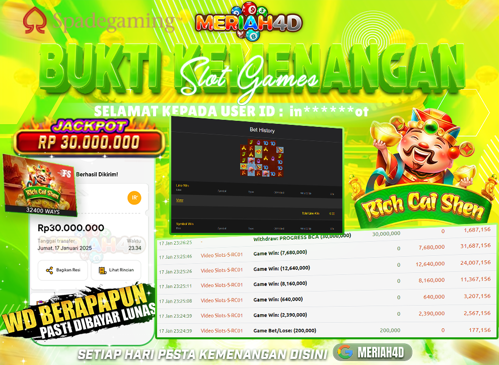 MERIAH4D Bukti Kemenangan Slot RICH CAI SHEN