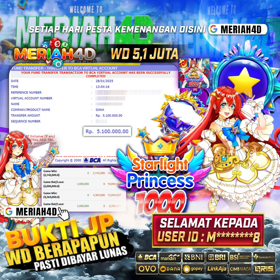 MERIAH4D Bukti Kemenangan Slot STARLIGHT PRINCESS 1000
