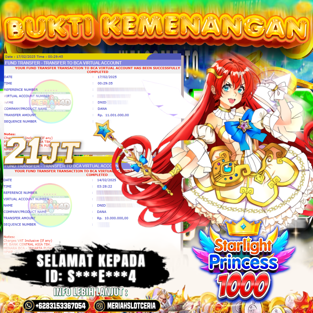 MERIAH4D Bukti Kemenangan Slot STARLIGHT PRINCESS 1000