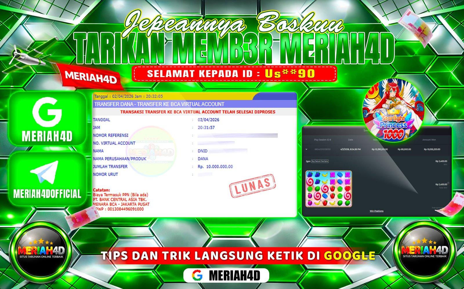 MERIAH4D Bukti Kemenangan SLOT STARLIGHT PRINCESS 1000