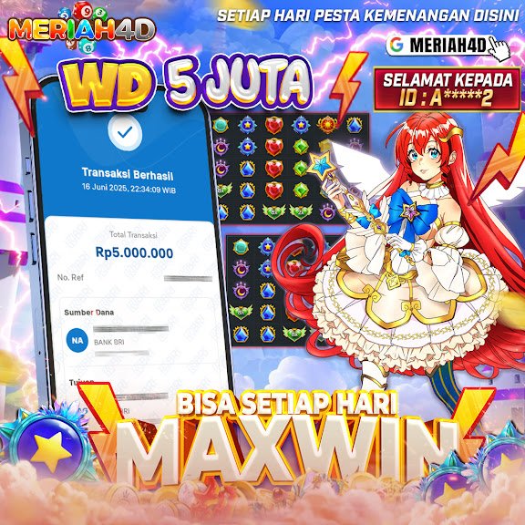 Selamat Kepada ID : A*****2 Atas Withdraw Rp. 5,000,000 Juta Hari ini. Ditunggu Withdraw Selanjutnya dan ajak juga teman temannya bergabung di Meriah4d