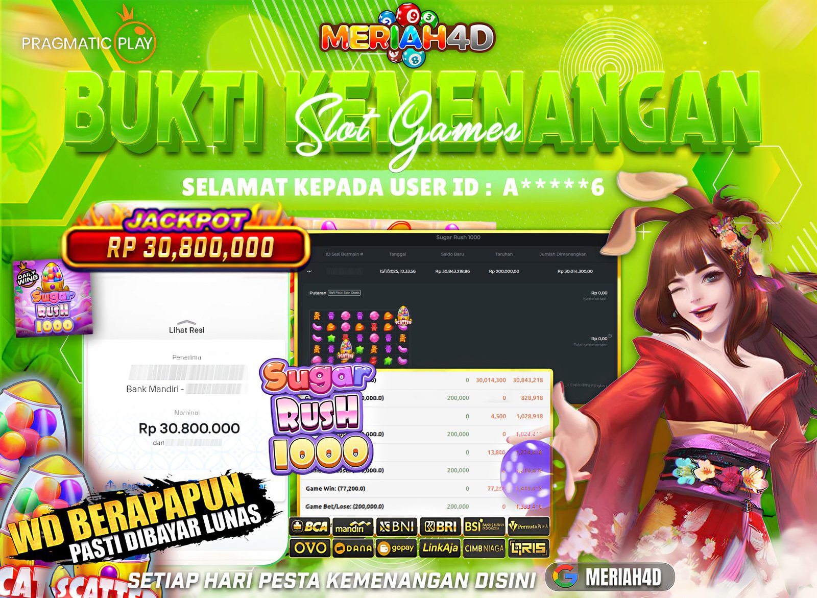 MERIAH4D Bukti Kemenangan Slot SUGAR RUSH 1000
