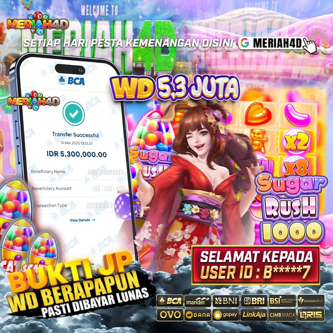Selamat Kepada ID : B*****7 Atas Withdraw Rp. 5.300.000 Juta Hari ini. Ditunggu Withdraw Selanjutnya dan ajak juga teman temannya bergabung di Meriah4d