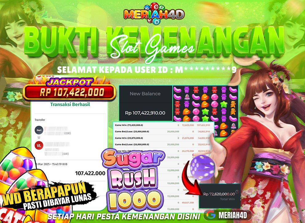 MERIAH4D Bukti Kemenangan Slot SUGAR RUSH 1000