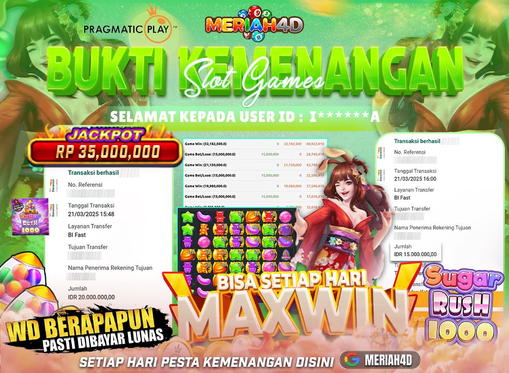 MERIAH4D Bukti Kemenangan Slot SUGAR RUSH 1000