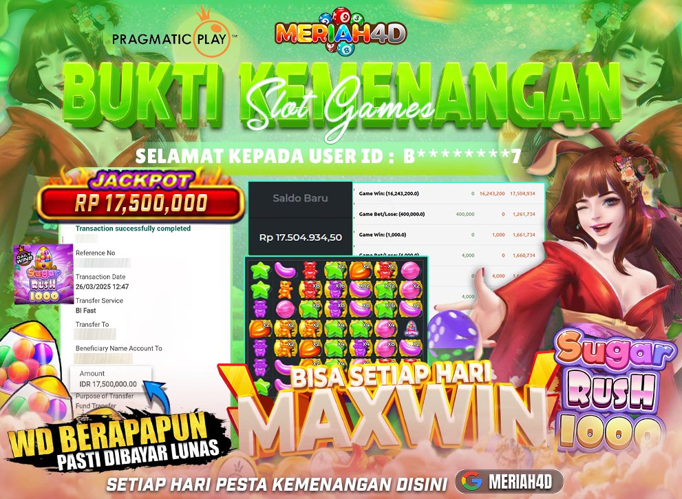 MERIAH4D Bukti Kemenangan SLOT SUGAR RUSH 1000