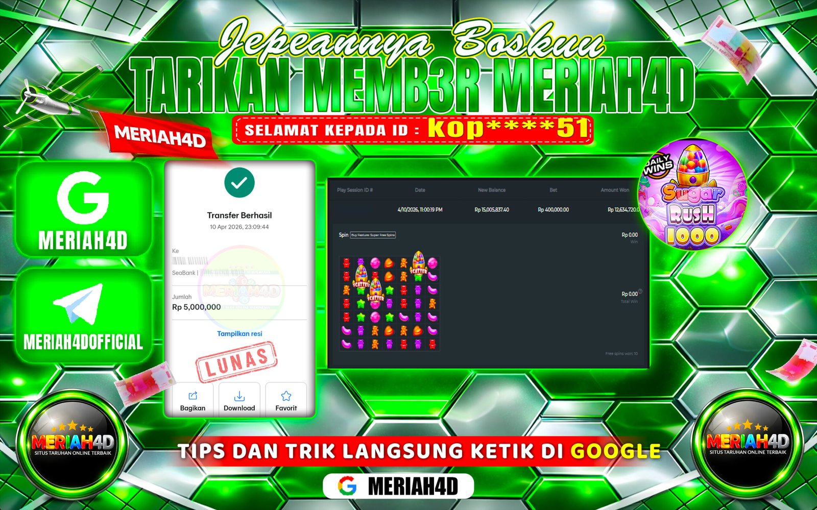 MERIAH4D Bukti Kemenangan SLOT SUGAR RUSH 1000