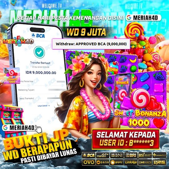 Selamat Kepada ID : B*******3 Atas Withdraw Rp. 9,000,000 Juta Hari ini. Ditunggu Withdraw Selanjutnya dan ajak juga teman temannya bergabung di Meriah4d