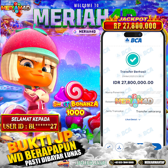 Selamat Kepada ID : BL*****27 Atas Withdraw Rp. 27,800,000 Juta Hari ini. Ditunggu Withdraw Selanjutnya dan ajak juga teman temannya bergabung di Meriah4d