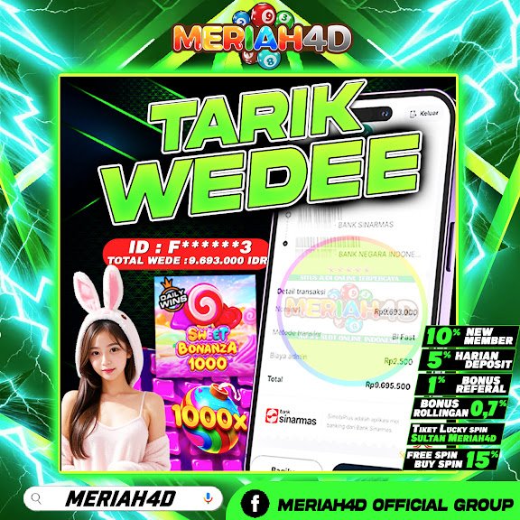 Selamat Kepada ID : F******3 Atas Withdraw Rp. 9.693.000 Juta Hari ini. Ditunggu Withdraw Selanjutnya dan ajak juga teman temannya bergabung di Meriah4d