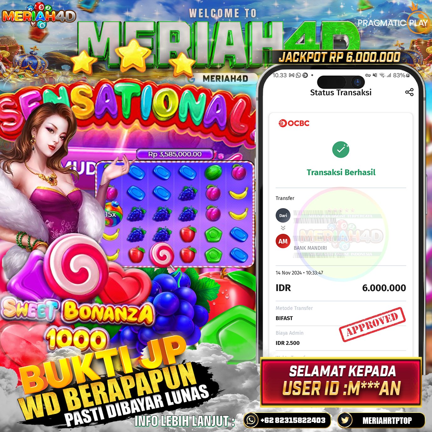Selamat Kepada Id : M*****AN Atas Withdraw Rp. 6.000.000 Juta Hari ini. Ditunggu Withdraw Selanjutnya dan ajak juga teman temannya bergabung di Meriah4d