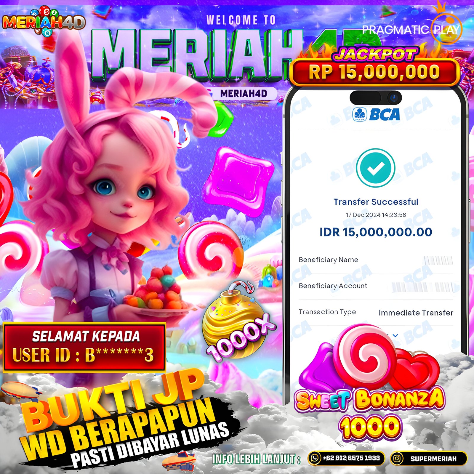 Selamat Kepada ID : B*******3 Atas Withdraw Rp. 15.000.000 Juta Hari ini. Ditunggu Withdraw Selanjutnya dan ajak juga teman temannya bergabung di Meriah4d