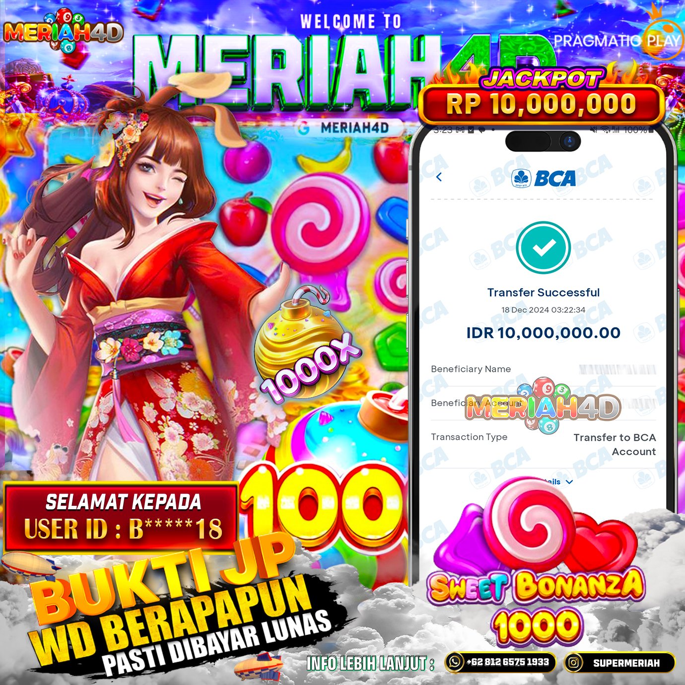 Selamat Kepada ID : B******18 Atas Withdraw Rp. 10.000.000 Juta Hari ini. Ditunggu Withdraw Selanjutnya dan ajak juga teman temannya bergabung di Meriah4d