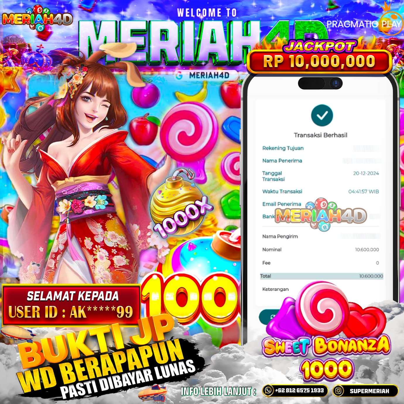 MERIAH4D Bukti Kemenangan Slot SWEET BONANZA 1000