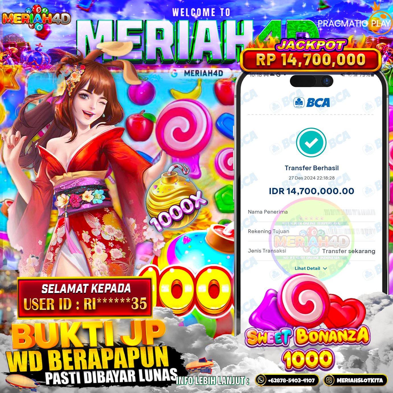 MERIAH4D Bukti Kemenangan Slot SWEET BONANZA 1000