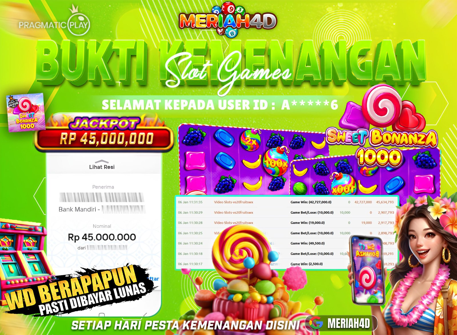 MERIAH4D Bukti Kemenangan Slot SWEET BONANZA 1000
