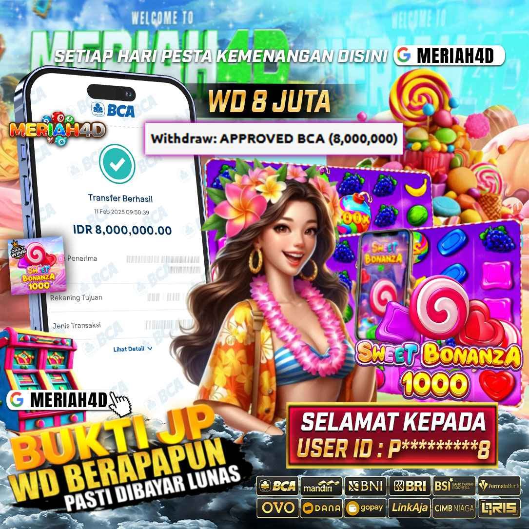 Selamat Kepada ID : P*********8 Atas Withdraw Rp. 8.000.000 Juta Hari ini. Ditunggu Withdraw Selanjutnya dan ajak juga teman temannya bergabung di Meriah4d
