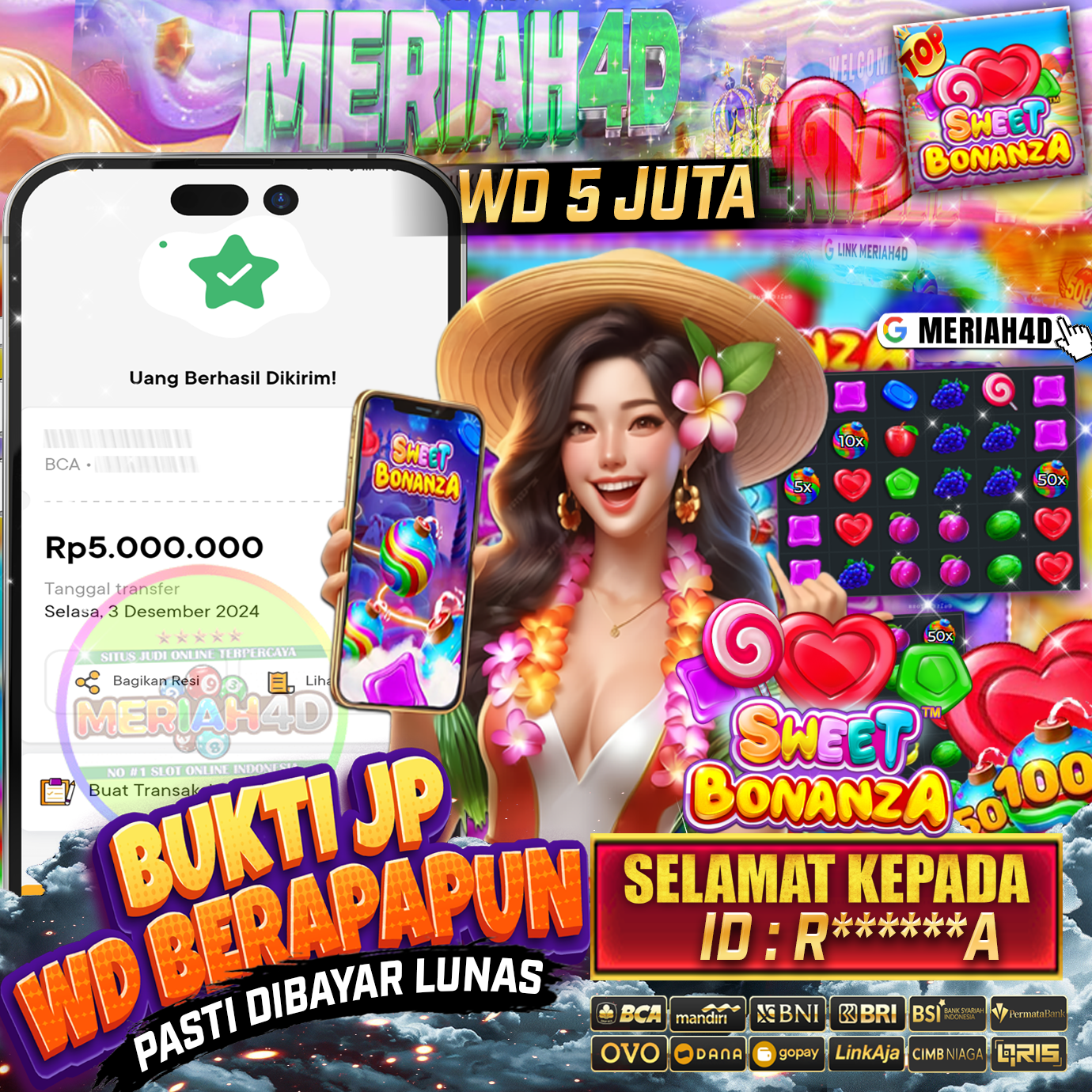 Selamat Kepada Id : R*******A Atas Withdraw Rp. 5.00.000 Juta Hari ini. Ditunggu Withdraw Selanjutnya dan ajak juga teman temannya bergabung di Meriah4d