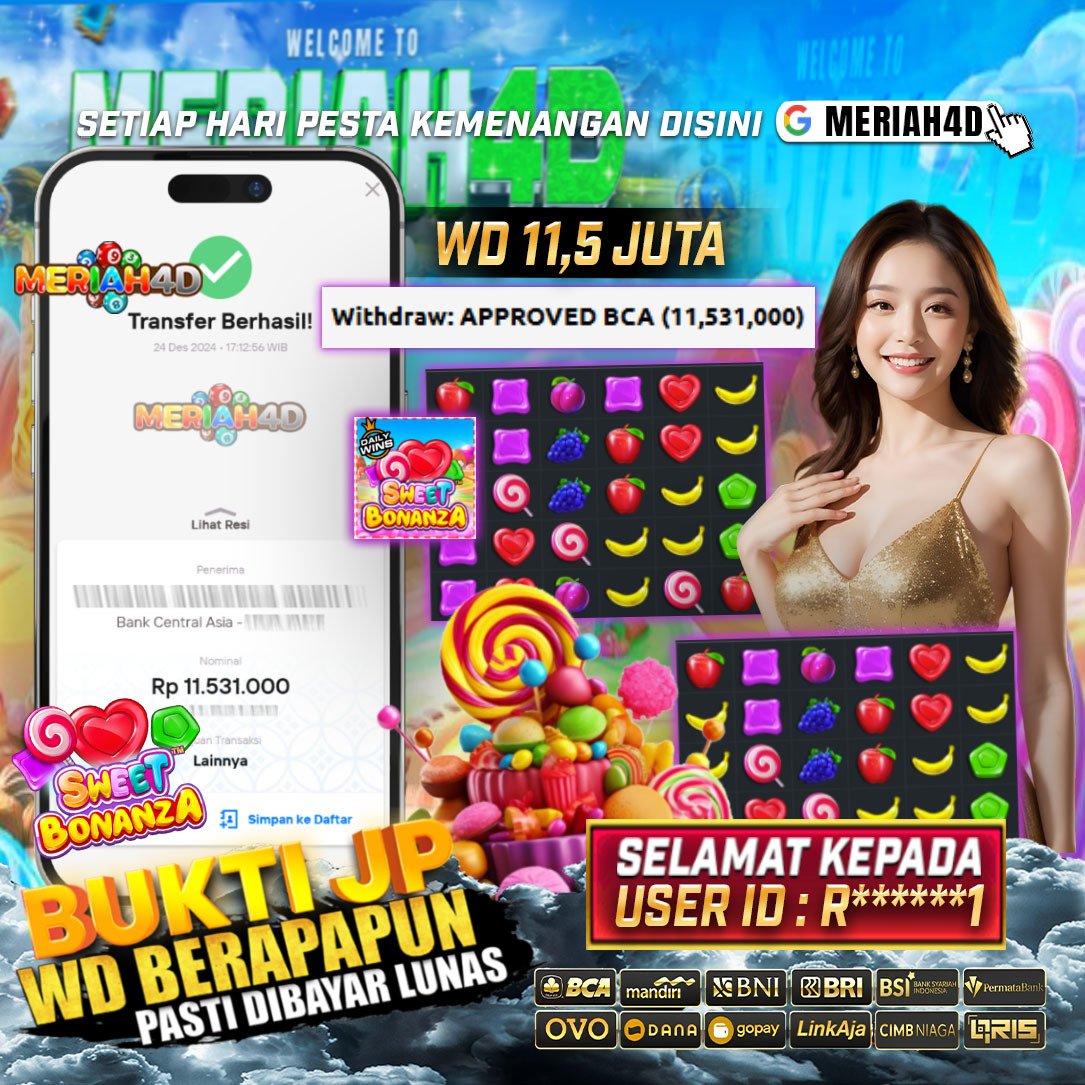 Selamat Kepada ID : R*****1 Atas Withdraw Rp. 11.500.000 Juta Hari ini. Ditunggu Withdraw Selanjutnya dan ajak juga teman temannya bergabung di Meriah4d