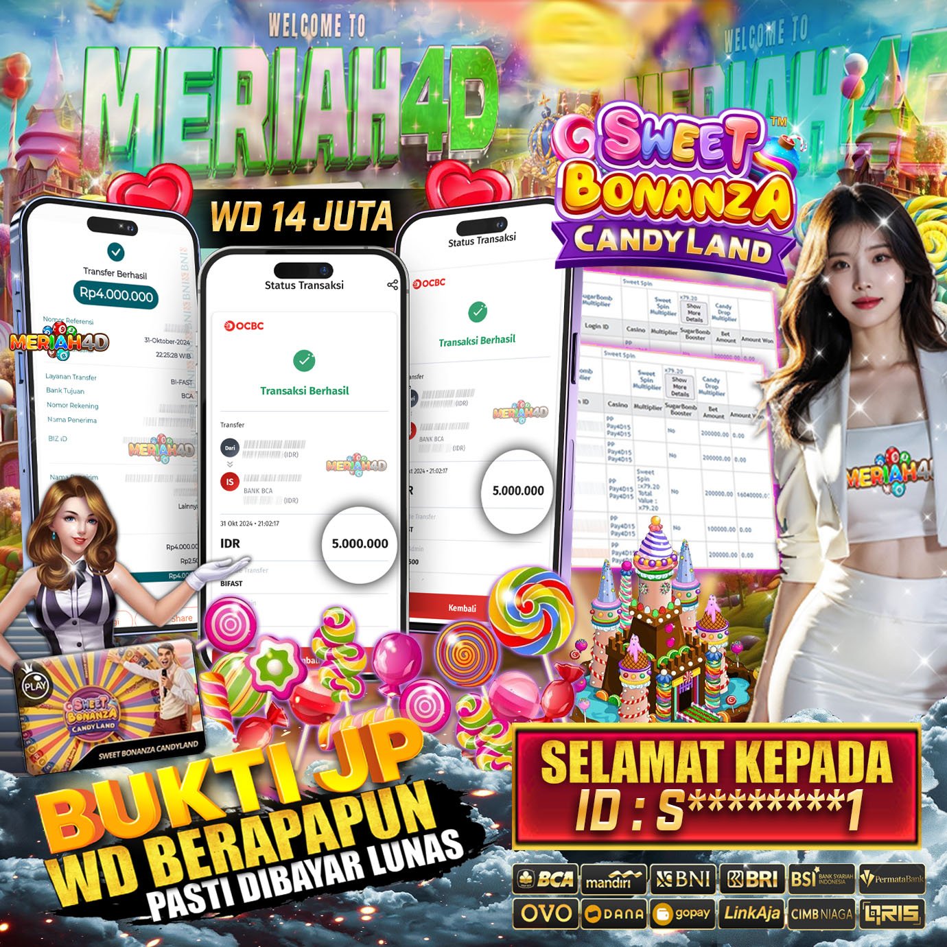 Selamat Kepada Id : S******1 Atas Withdraw Rp. 14.000.000 Juta Hari ini. Ditunggu Withdraw Selanjutnya dan ajak juga teman temannya bergabung di Meriah4d