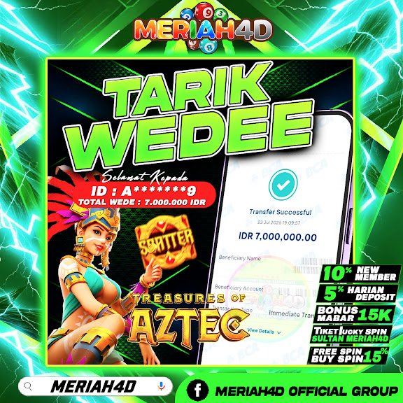 Selamat Kepada ID : A*******9 Atas Withdraw Rp. 7.000.000 Juta Hari ini. Ditunggu Withdraw Selanjutnya dan ajak juga teman temannya bergabung di Meriah4d