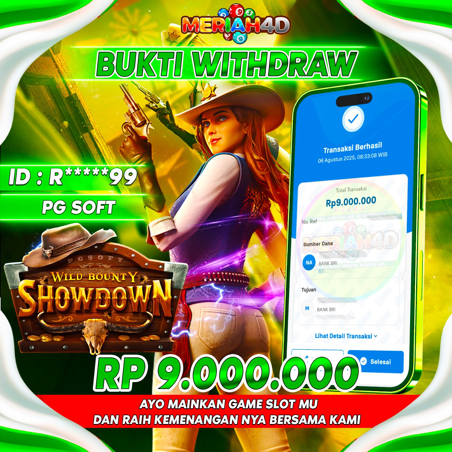 Selamat Kepada ID : R******99 Atas Withdraw Rp. 9.000.000 Juta Hari ini. Ditunggu Withdraw Selanjutnya dan ajak juga teman temannya bergabung di Meriah4d