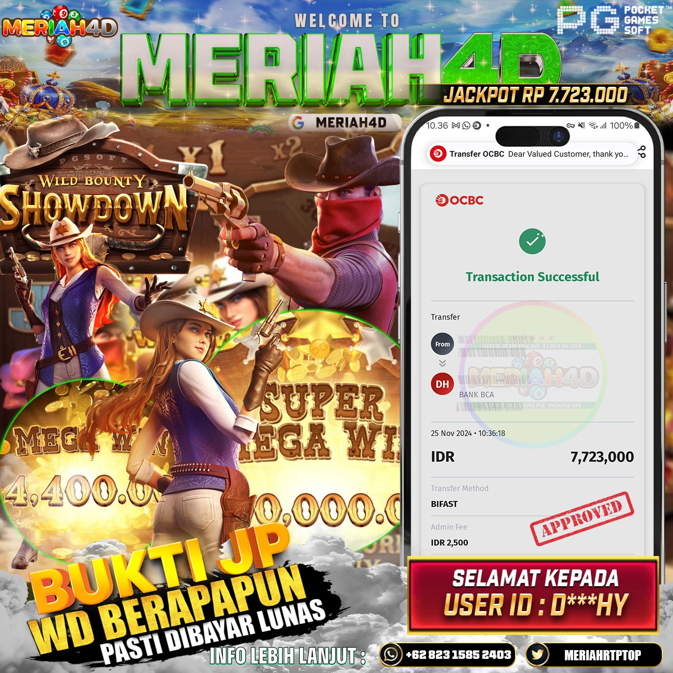 Selamat Kepada Id : D******HY Atas Withdraw Rp. 7.723.000 Juta Hari ini. Ditunggu Withdraw Selanjutnya dan ajak juga teman temannya bergabung di Meriah4d