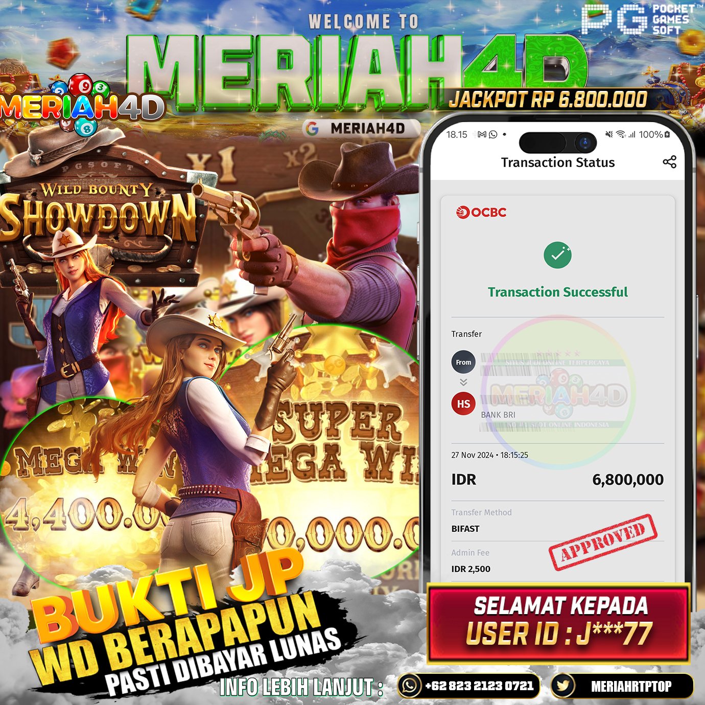 Selamat Kepada Id : J*****77 Atas Withdraw Rp. 6.800.000 Juta Hari ini. Ditunggu Withdraw Selanjutnya dan ajak juga teman temannya bergabung di Meriah4d