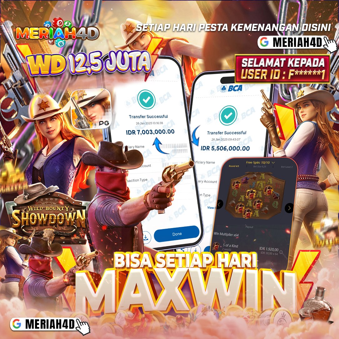 Selamat Kepada ID : F******1 Atas Withdraw Rp. 12.500.000 Juta Hari ini. Ditunggu Withdraw Selanjutnya dan ajak juga teman temannya bergabung di Meriah4d