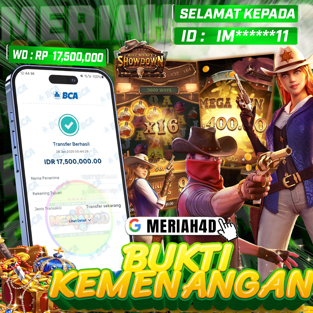 Selamat Kepada ID : IM******11 Atas Withdraw Rp. 17.500.000 Juta Hari ini. Ditunggu Withdraw Selanjutnya dan ajak juga teman temannya bergabung di Meriah4d