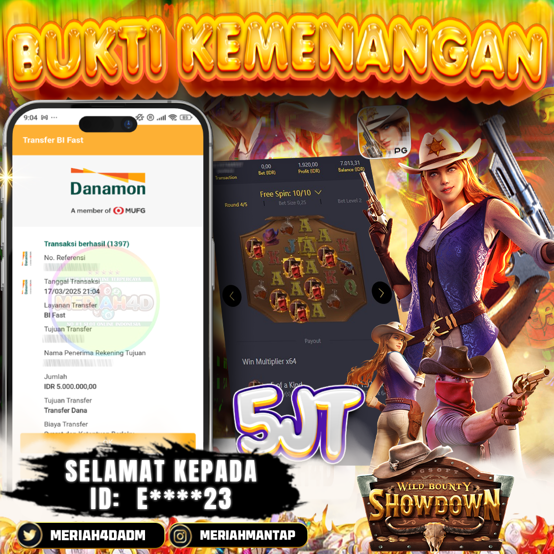 Selamat Kepada ID : E*******23 Atas Withdraw Rp. 5.000.000 Juta Hari ini. Ditunggu Withdraw Selanjutnya dan ajak juga teman temannya bergabung di Meriah4d