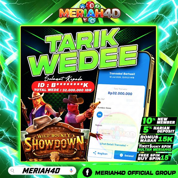 Selamat Kepada ID : B*******K Atas Withdraw Rp. 32.000.000 Juta Hari ini. Ditunggu Withdraw Selanjutnya dan ajak juga teman temannya bergabung di Meriah4d