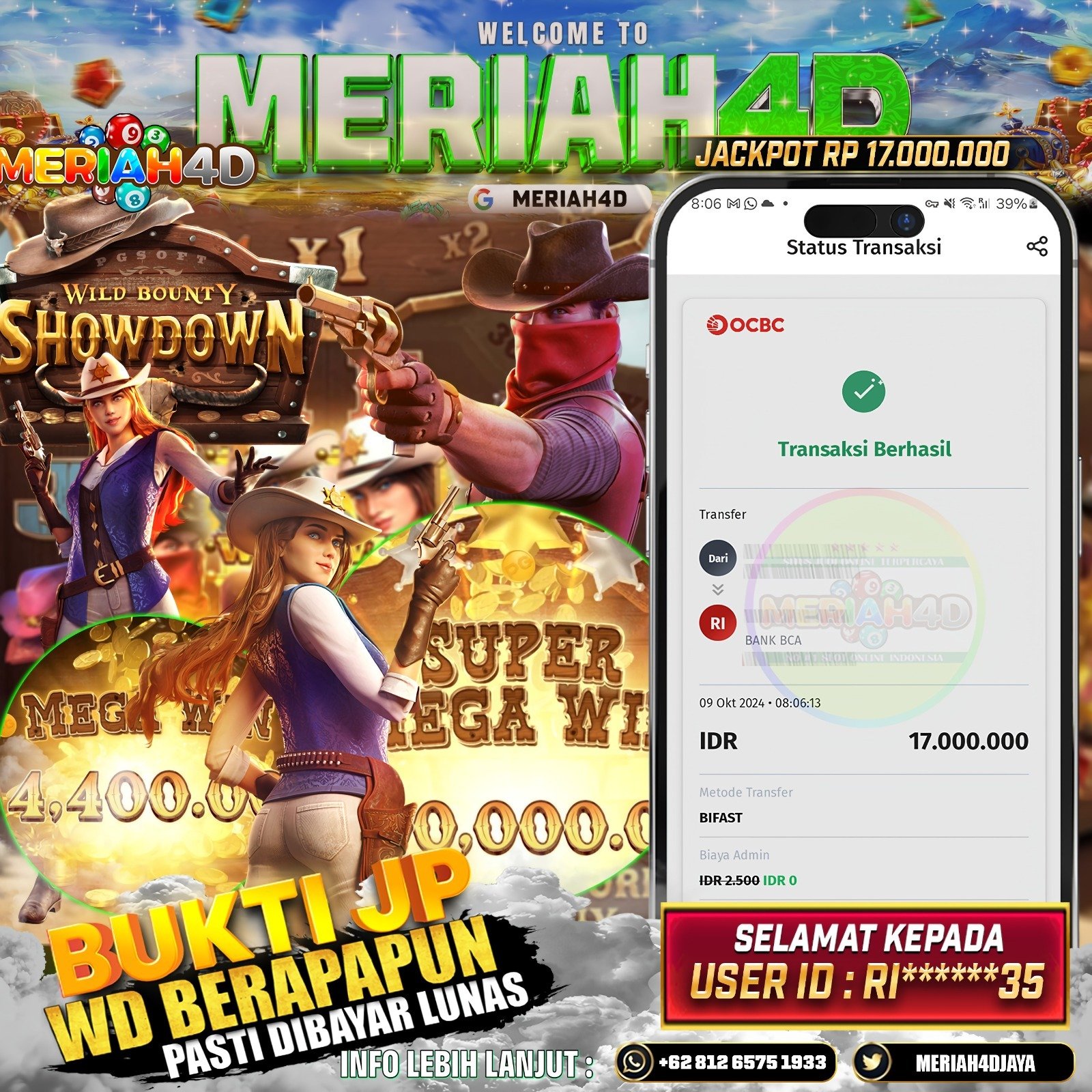 Selamat Kepada Id : RI*******35 Atas Withdraw Rp. 17.000.000 Juta Hari. ini Ditunggu Withdraw Selanjutnya dan ajak juga teman temannya bergabung di Meriah4d