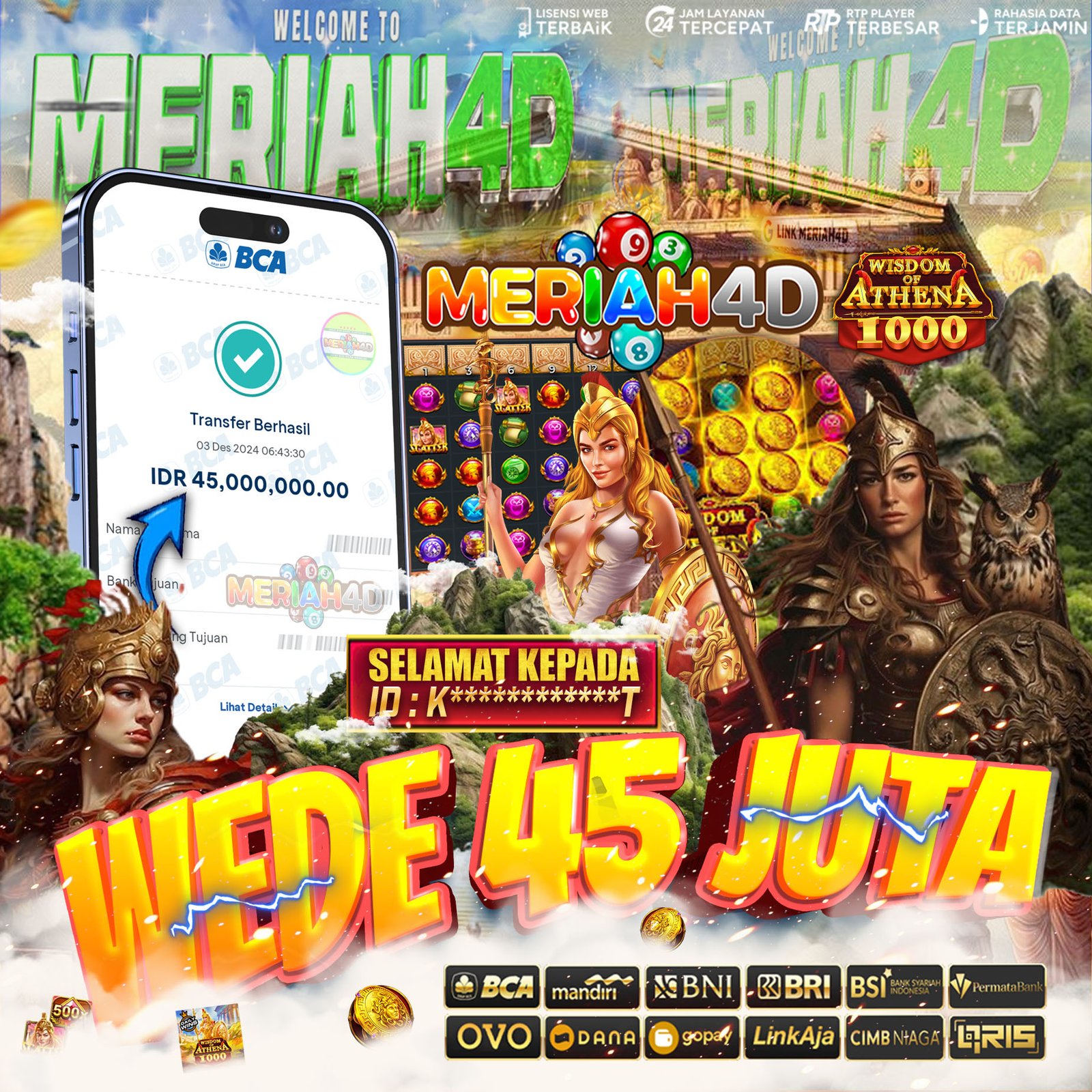 MERIAH4D Bukti Kemenangan Slot WISDOM OF ATHENA 1000