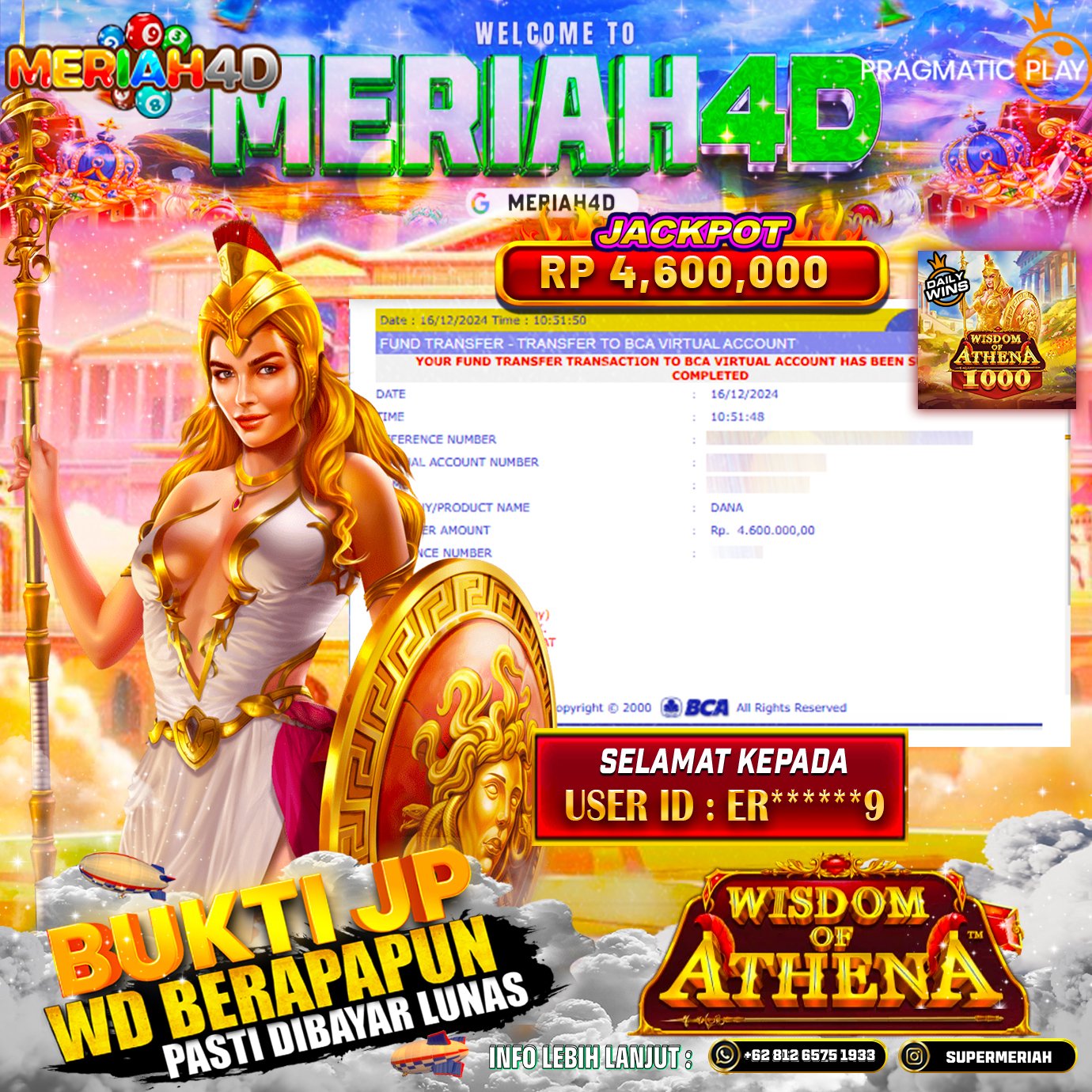 MERIAH4D Bukti Kemenangan Slot WISDOM OF ATHENA