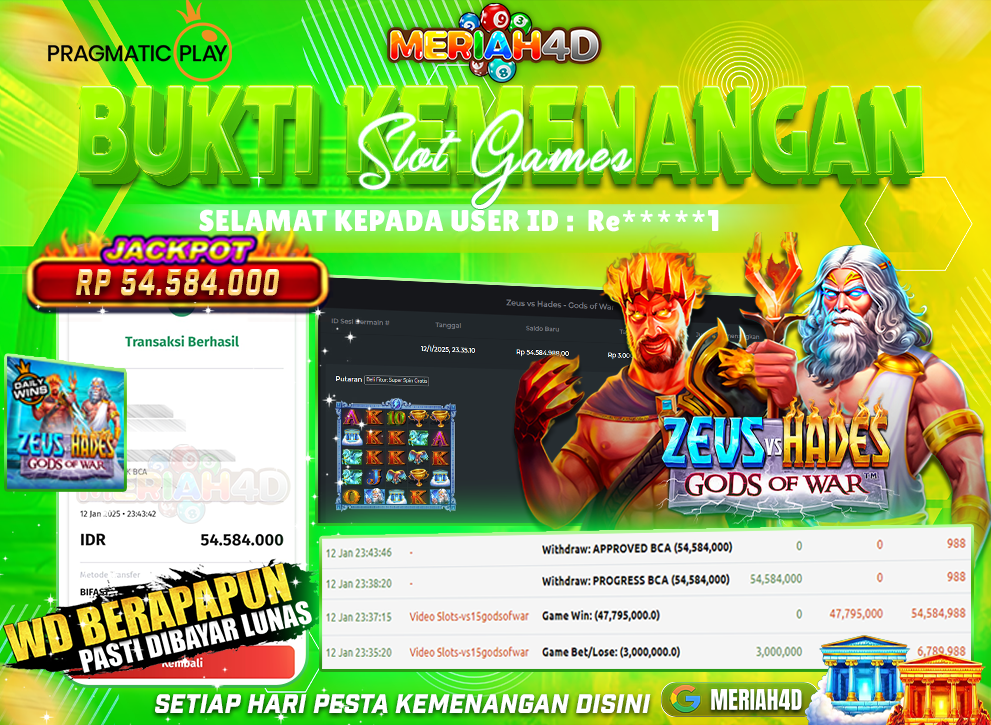MERIAH4D Bukti Kemenangan Slot ZEUS VS HADES GOD OF WAR