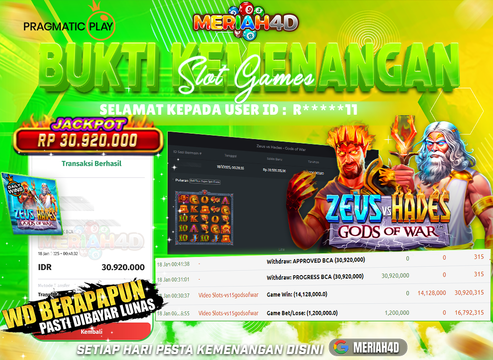 MERIAH4D Bukti Kemenangan Slot ZEUS VS HADES GODS OF WAR